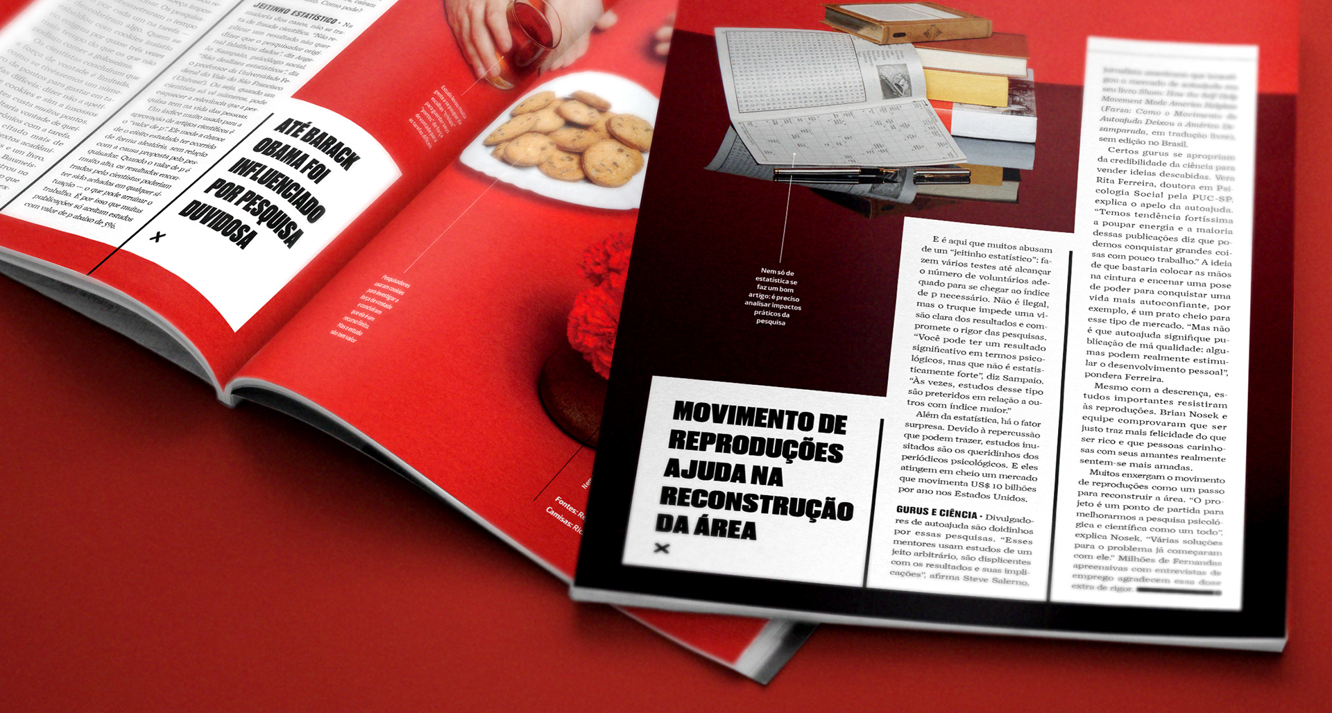 Five-page story published in Galileu Mag. It tells about psychological tests and how their use is subverted by self-help books. To illustrate the text, we translated in images some theories used in these tests. Exploring stills' visual language and using as reference the photographic syntax of magazines as Toilet Paper, we chose some objects that belonged to the universe of ideas suggested by psychology and literature.